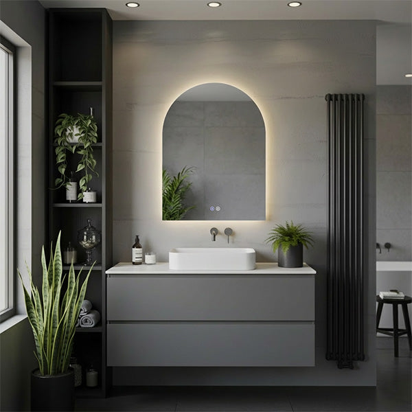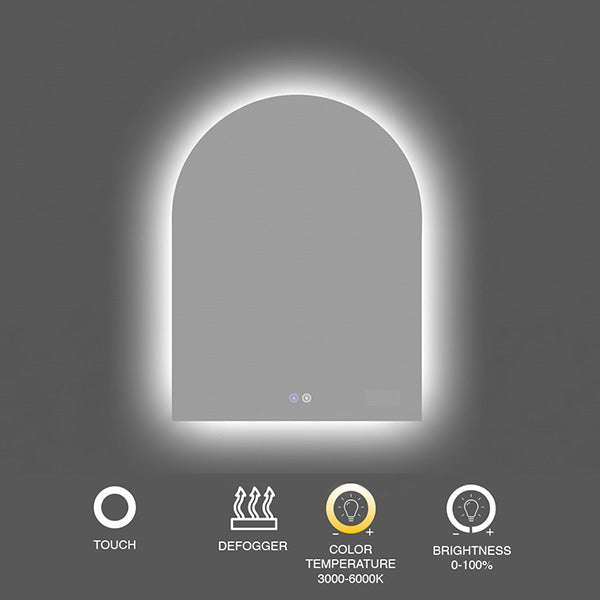 The Cove™ is a frameless arched LED mirror cabinet that softens the space while providing practical storage. Curved top adds architectural interest. Adjustable tempered glass shelves and built-in 15A outlet inside. Perimeter LED lighting follows the arch profile. Touch controls, adjustable color temperature (3000K–6000K), and integrated defogger. Frameless design keeps the aesthetic minimal while the arch breaks away from rectangle boxes. Surface mount installation. 5-year warranty.